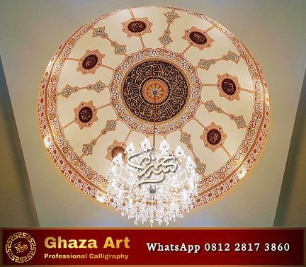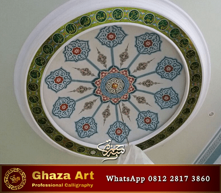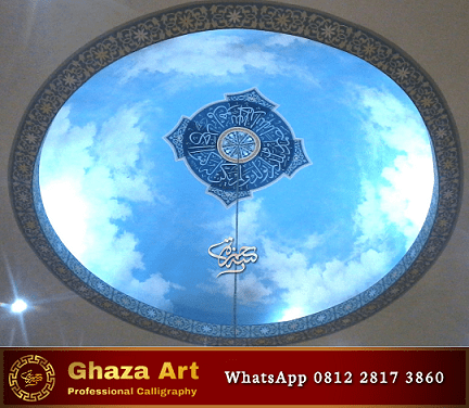 Lukis kaligrafi merupakan salah satu teknik sederhana yang banyak digunakan untuk pembuatan kaligrafi dinding dan plafon kubah masjid menggunakan cat berkualitas merk mowilex yang dikenal tahan terhadap cuaca.